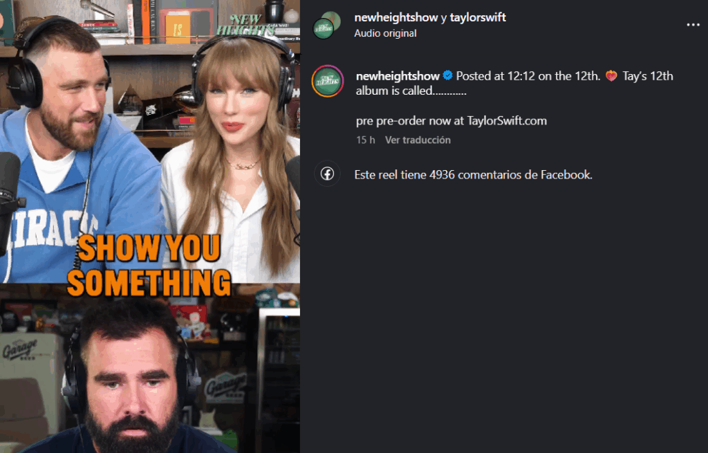 El episodio del podcast «New Heights» que incluye la entrevista con Taylor Swift estará disponible el 13 de agosto a las 17:00 horas (tiempo de México) en YouTube. Los seguidores podrán escuchar de primera mano los detalles del álbum y, posiblemente, algunos adelantos musicales. Mientras tanto, la preventa del disco ya está disponible en la página oficial de Taylor Swift, con opciones de formato físico y digital.